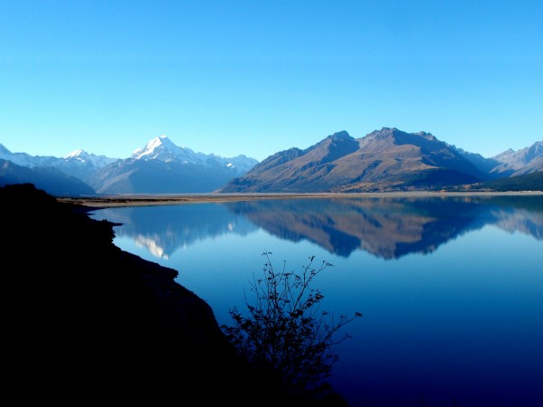 – Le lac Pukaki peut être fier d’avoir le Mont Cook aux neiges éternelles et d’autres montagnes en toile de fond. Elles s’y reflètent comme dans un parfait miroir. Depuis un observatoire, on une vue imprenable sur ces deux lacs.
